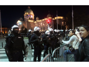 Policija je uhapsila V. Š. zbog sumnje da je u nedelju na Trgu Nikole Pašića u neposrednoj blizini Doma Narodne skupštine pozivao na nasilnu promenu...