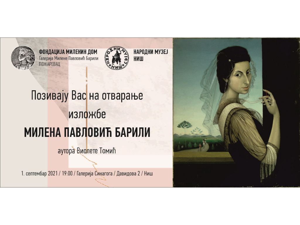 Otvaranje izložbe umetničkih dela Milene Pavlović Barili zakazano je za 1. septembar 2021. u 19 sati u Galeriji Sinagoga, u ulici Davidova 2.