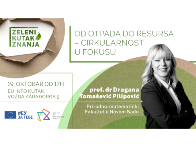 Predavanje u prostorijama EU info kutka u Niš (Vožda Karađorđa 5) održaće prof. dr Dragana Tomašević Pilipović, sa Departmana za hemiju, biohemiju i zaštitu životne sredine, Prirodno-matematičkog Fakulteta, Univerziteta u Novom Sadu.