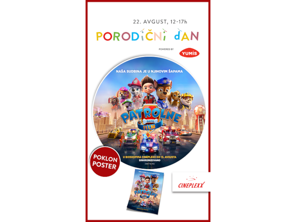 Iz Cineplexx bioskopa najavljuju poklon poster omiljenih junaka za sve mališane, a desetoro najsrećnijih mališana dobiće poklon pakete partner bioskopa, kompanija Yumis.