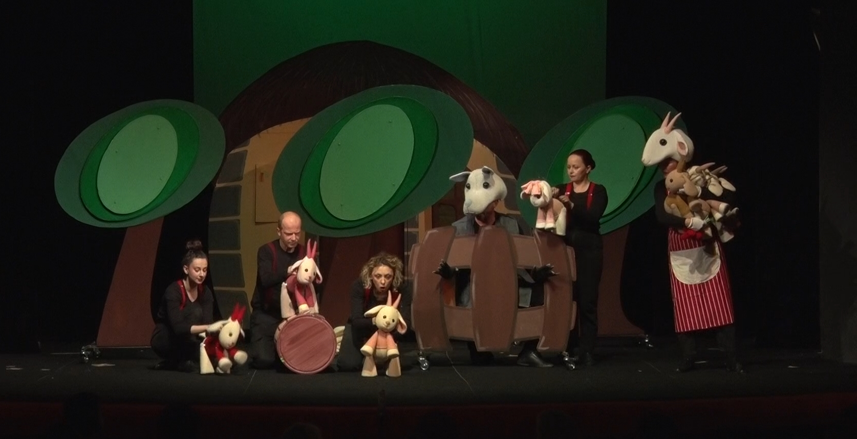 Predstavu „Vuk i sedam jarića“ režirao je Davor Dragojević, a uloge tumače: Davorin Dinić, Marija Cvetković, Mirjana Đorđević, Srđan Miljković, Jelena Đorđević i Teodora Stojković.