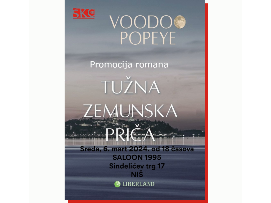 Studentski kulturni centar Niš pozivas na promociju romana "Tužna zemunska priča", čiji je autor Vudu Popaj.