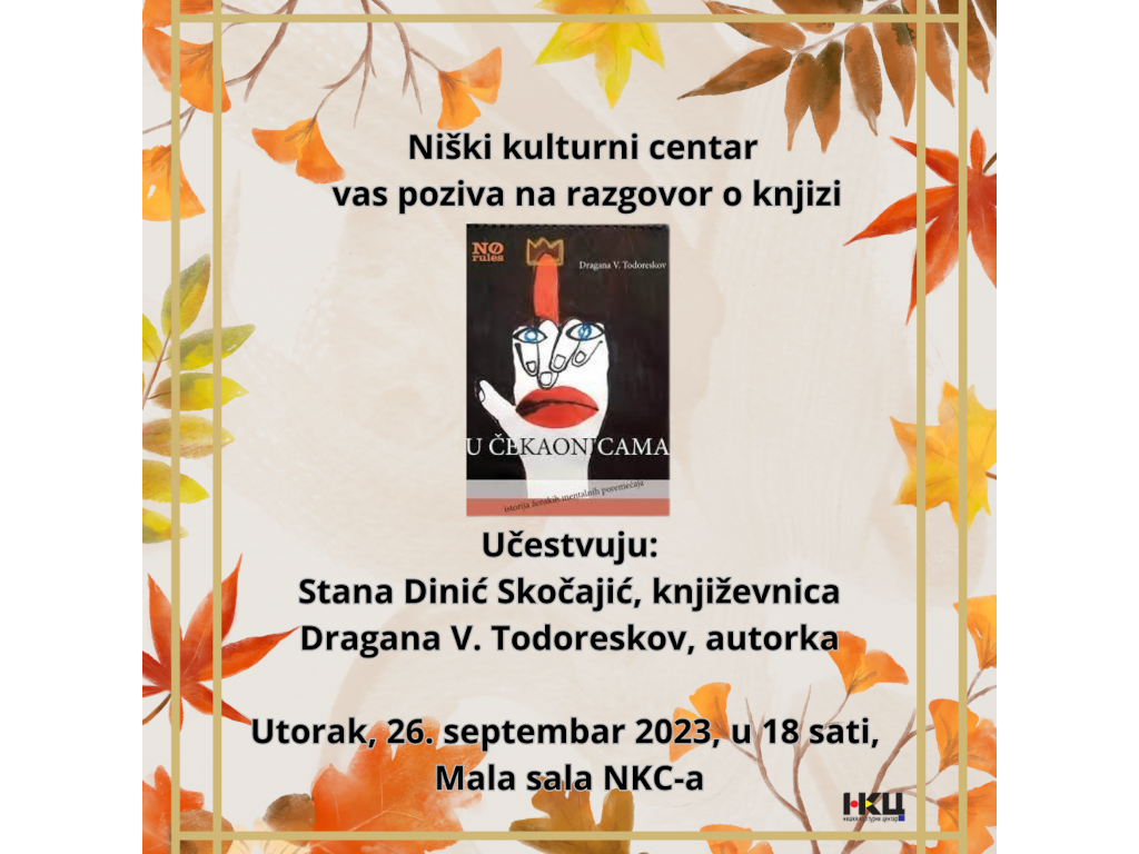 Organizatori su najavili učešće Stane Dinić Skočajić, književnice, Dragane V. Todoreskov, autorke, a moderator će biti Dragosava Mladenović, urednica Tribinskog programa NKC-a.