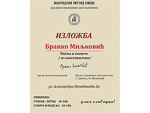 Narodni muzej Niš je najavio otvaranje izložbe "Branko Miljković - pisma i posvete iz zaostavštine", 12. februara u 13 sati u Književno-memorijalnoj...